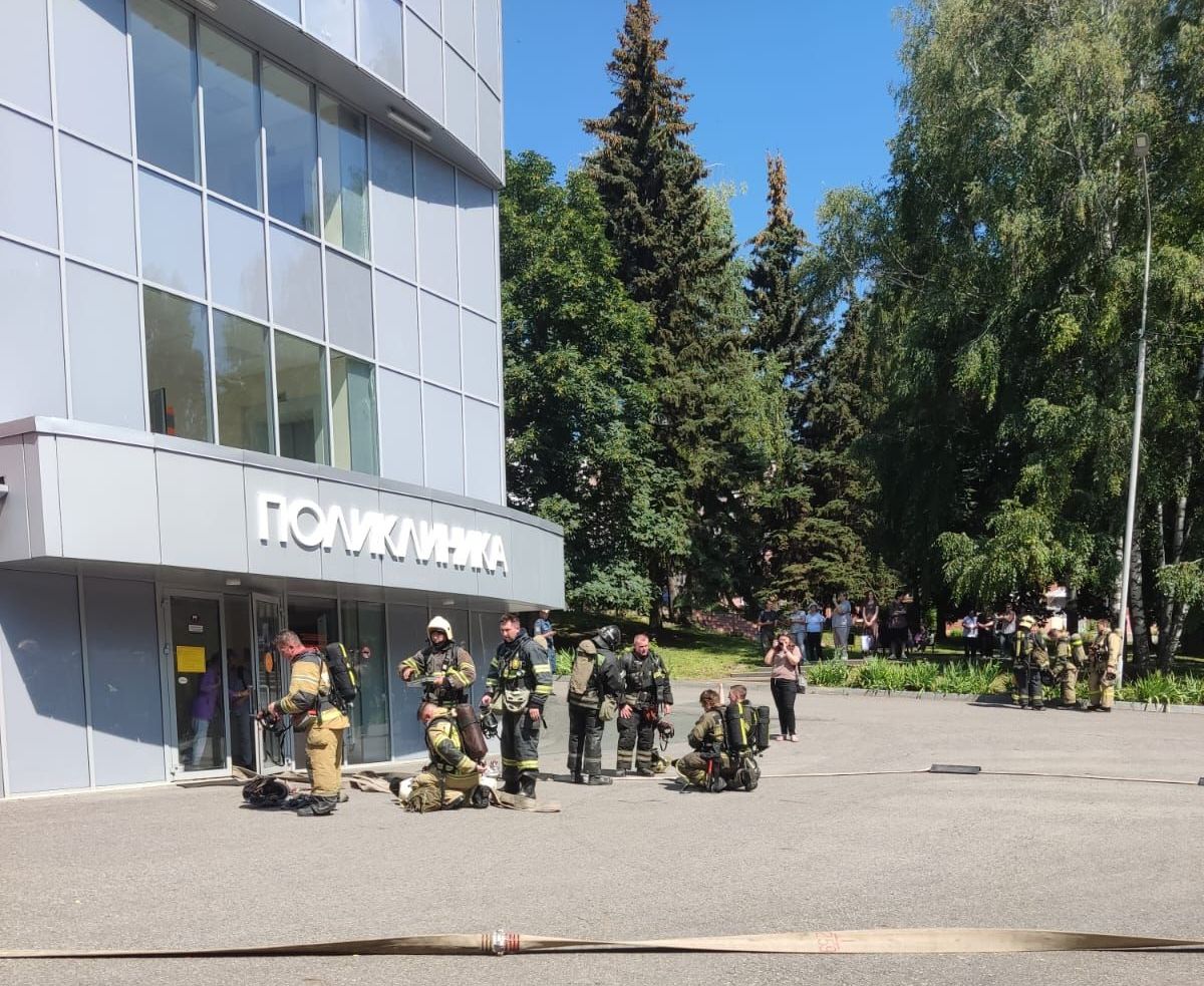 Коллектив поликлиники оперативно отреагировал на угрозу, организовав эвакуацию посетителей со всех этажей, уведомив пожарную часть и руководство о происшествии, были включены голосовое оповещение, светящиеся знаки о путях эвакуации, вытяжное пожарное дымоудаление, выставлены посты на путях эвакуации.