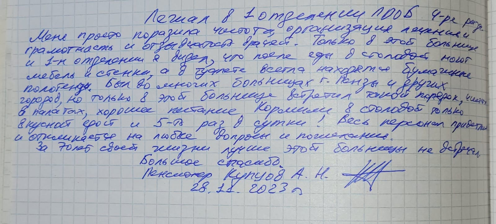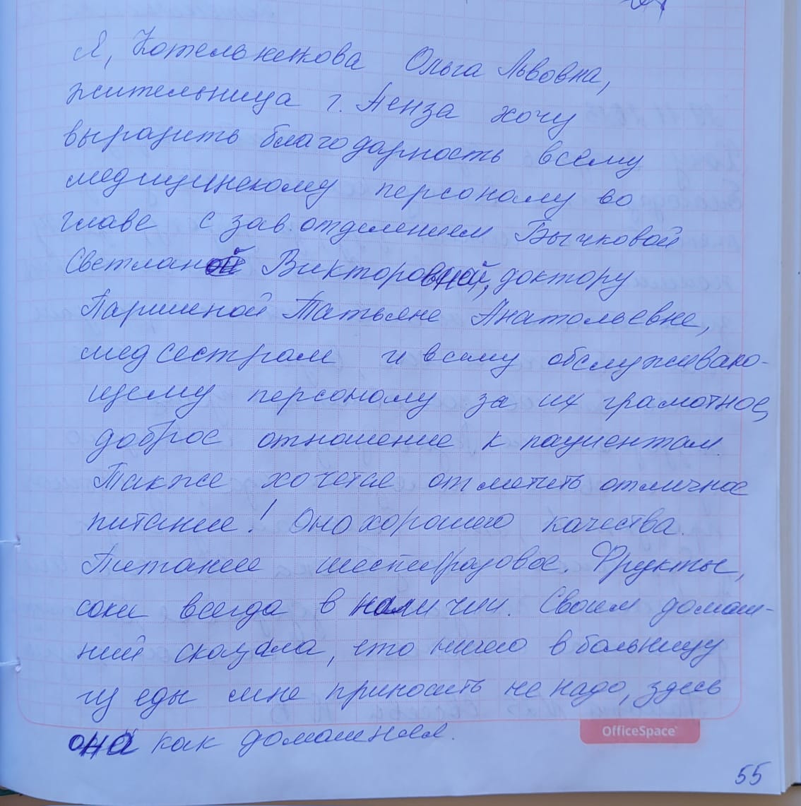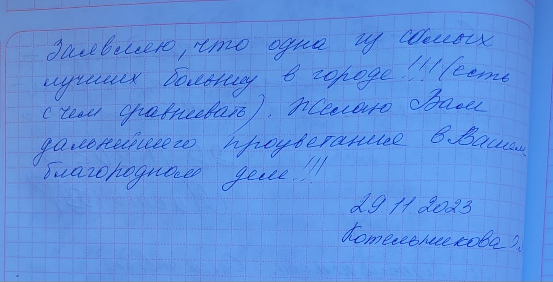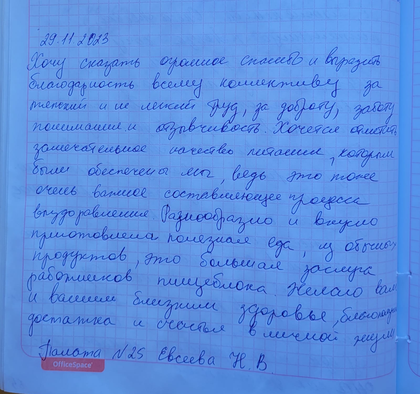 Как приятно слышать хорошие отзывы о своей работе! В нашей больнице пациенты хорошо отзываются не только о врачах и медсестрах, но и о работниках кухни. Вот некоторые отзывы и фотографии.