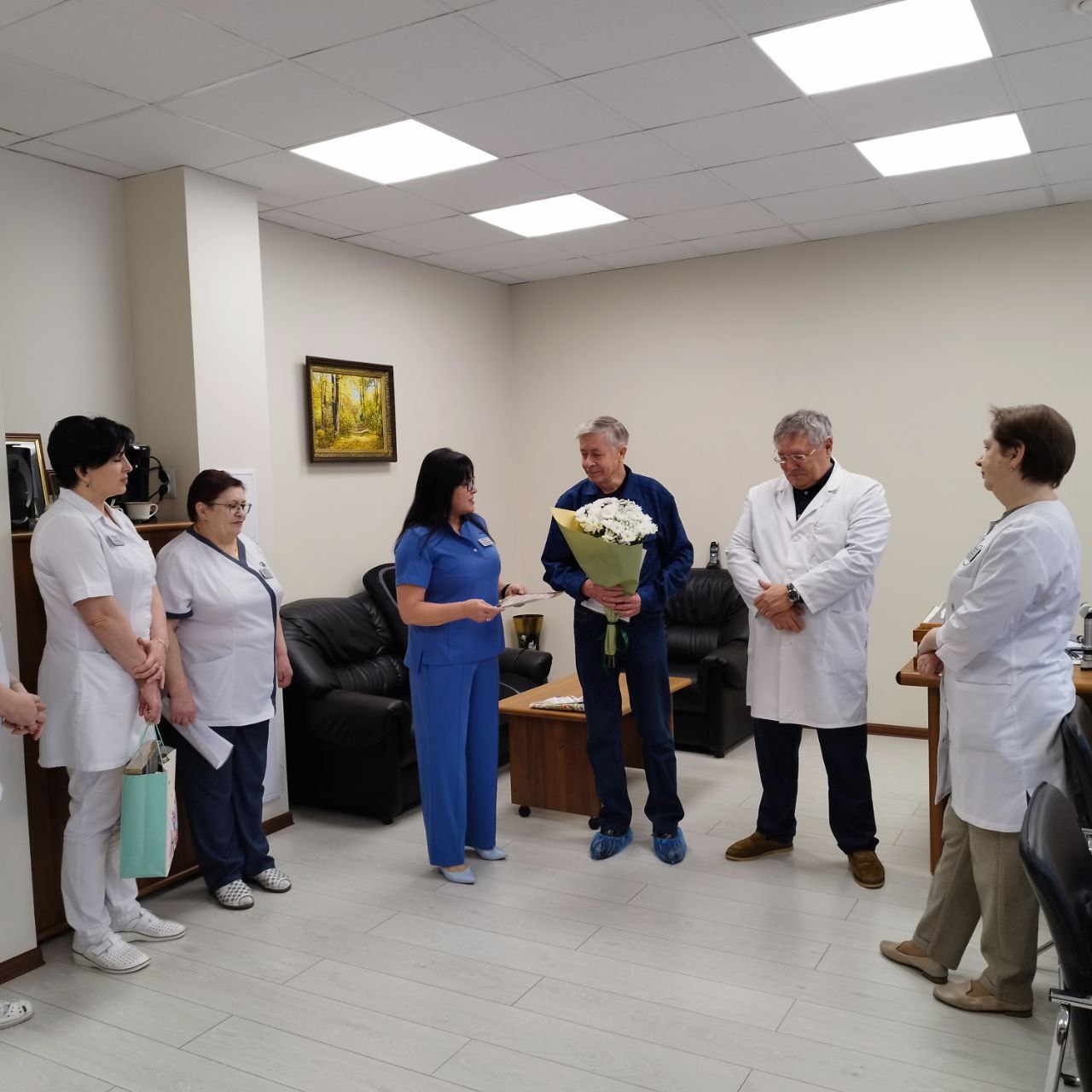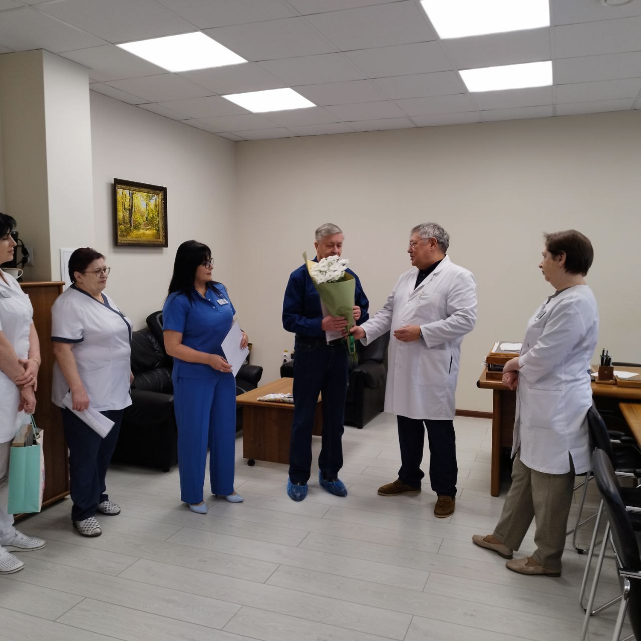 Михаилу Васильевичу Яковлеву, члену Совета ветеранов нашей больницы исполнилось 75. Михаил Васильевич, с удовольствием пришли Вас поздравить ваши бывшие коллеги. Здоровья Вам и вдохновения на долгие годы!