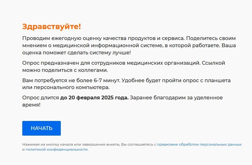 С 20.01.2025 по 20.02.2025 проводится оценка качества продуктов и сервисов среди пользователей Государственной информационной системы в сфере здравоохранения Пензенской области в формате опроса.