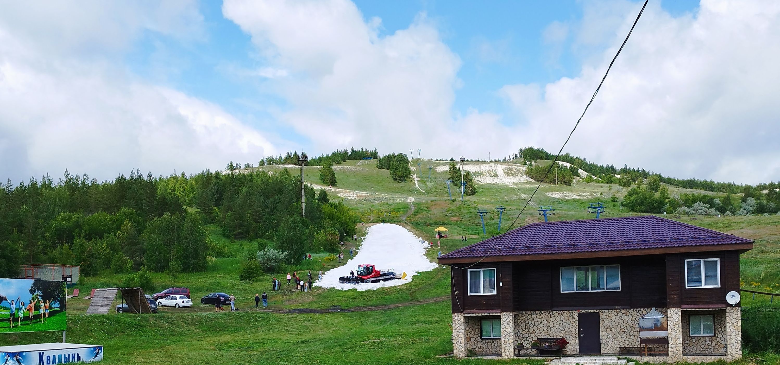 Помимо всего прочего в небольшом городке Хвалынске можно покататься на горных лыжах, проводят горнолыжные соревнования. Мы застали процесс размещения снега на склоне горы.