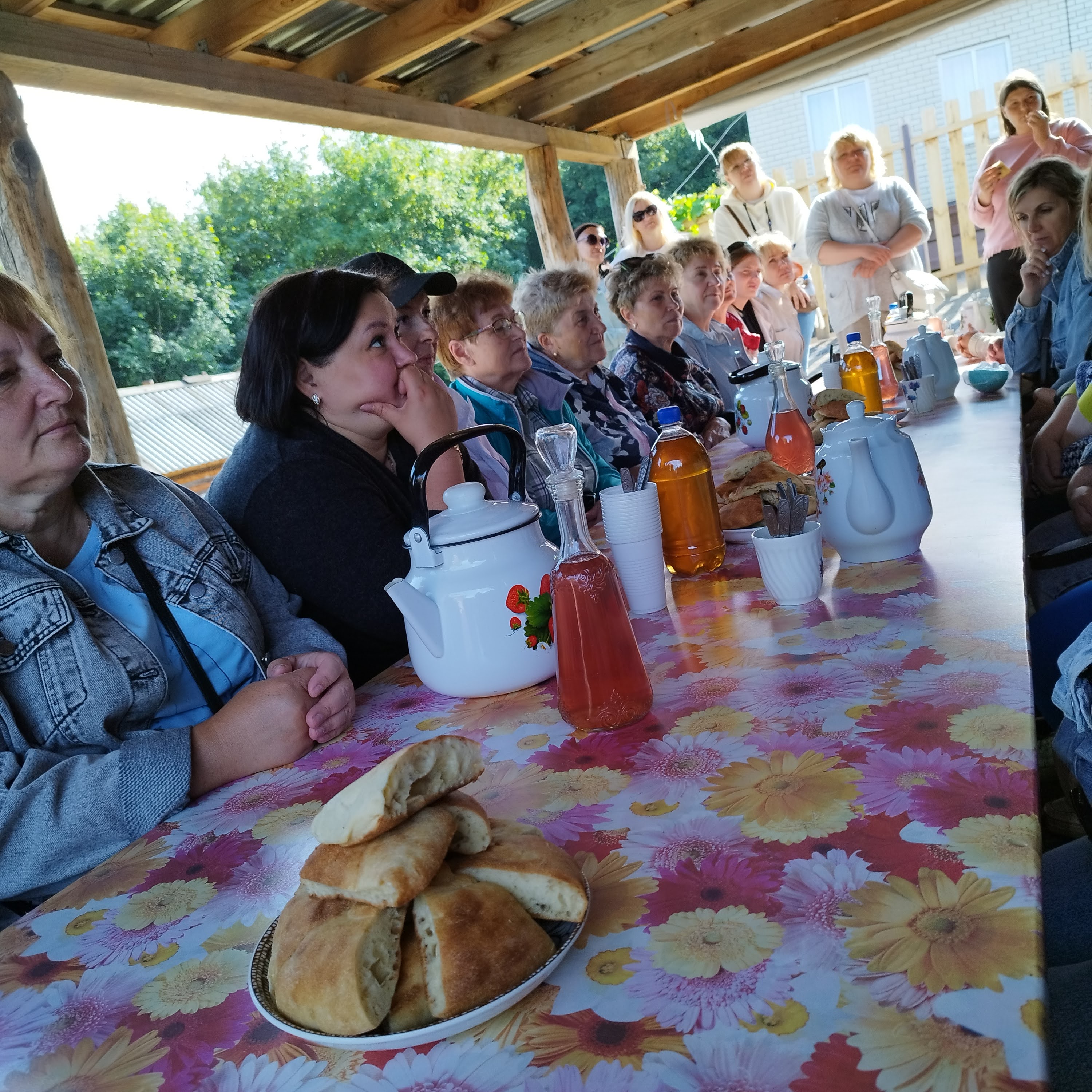 Посетили пчеловодческое подворье, где хозяин пасеки рассказал про мед и жизнь пчел.